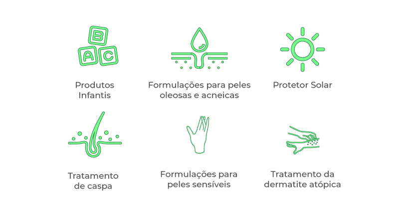 Suas formulações com potentes ações anti-inflamatórias e anti-irritantes.