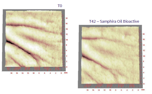 Testes in vivo, comprovam que Samphira Oil Bioactive a 0.25% reduz as rugas na região dos pés de galinha em 16.5%