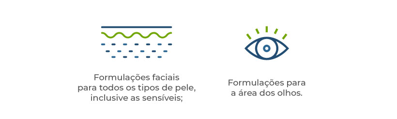 Fórmulas para todos os tipos de pele, inclusive as sensíveis, sem causar respostas inflamatórias.