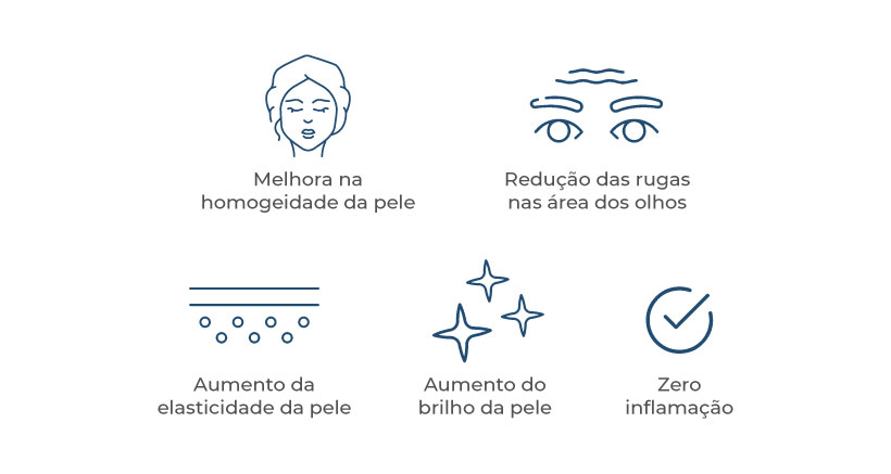 Com ação retinol-like (atua nos mesmos alvos que a molécula de retinoide), melhora a espessura da epiderme e aumenta a síntese de colágeno. Seu uso na rotina de skincare proporcionará: